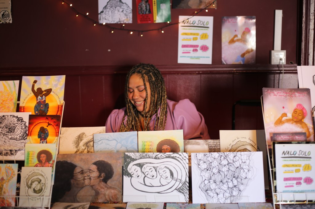 Black Brighton Market is an all day family-friendly market held on a weekend, it has it’s permanent residency at The Actors pub, where it spans across two rooms on the first floor. You will also find the market doing pop-ups at different venues and events. The day consists of different, specialised artists and makers selling their work and/or skill. Alongside a range of performances including a booked headline and open mic.